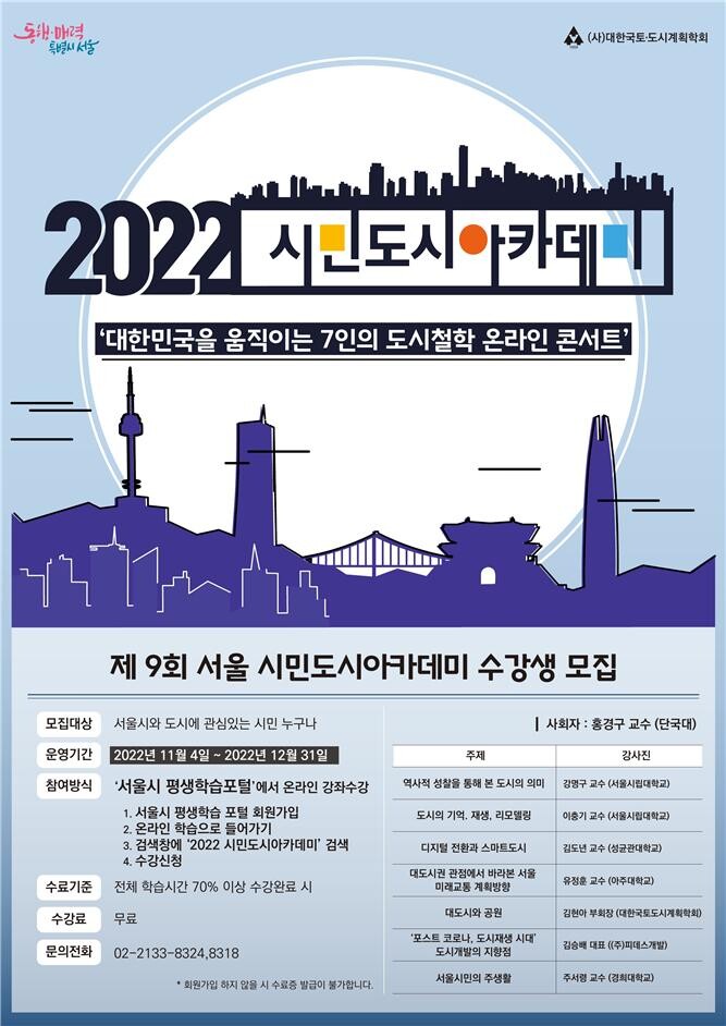 [세계로컬타임즈 이효진 기자] 서울시는 ‘2022 시민도시 아카데미’를 운영한다.