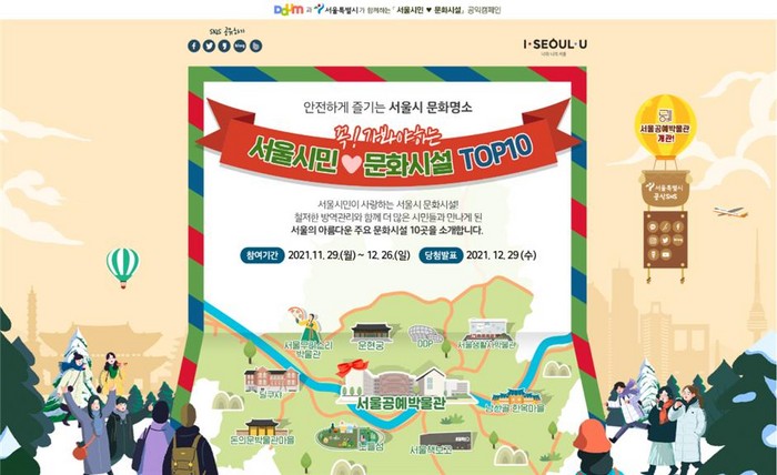 [세계로컬타임즈 이효진 기자] 서울시는 ‘서울시민이 사랑하는 문화시설 TOP10’ 온라인 이벤트를 오는 26일까지 진행한다.