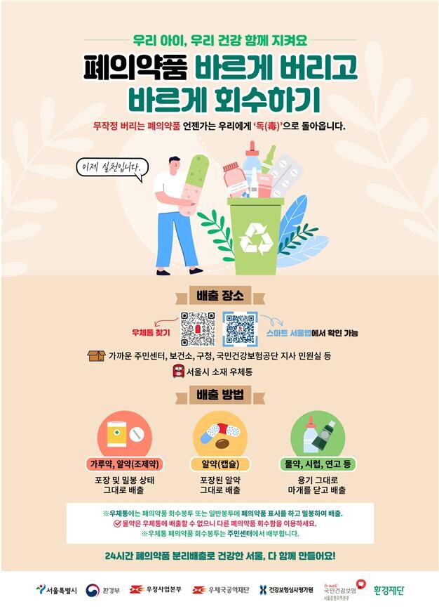 서울시는 ‘폐의약품 바르게 버리고 바르게 회수하기’ 업무협약을 체결하고, 오는 12월까지 우체통 활용 폐의약품 수거 시범사업을 진행 중이다.
