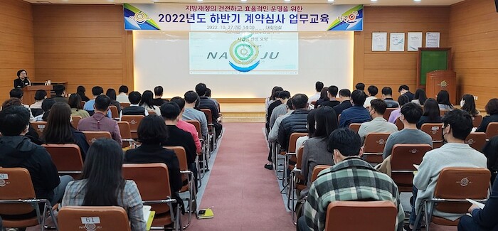 [세계로컬타임즈 강석운 기자] 나주시(시장 윤병태)는 지난 27일 건전한 지방 재정 운영을 위한 ‘2022년 하반기 계약심사 직무 교육’을 가졌다고 밝혔다.