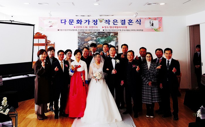 홍성주 수성구부구청장,이재수 외사자문위원장,고현주 수성구기독교 협의회장 등 100여 명의 하객이 참석하여 다문화가정 결혼식을 축하했다.