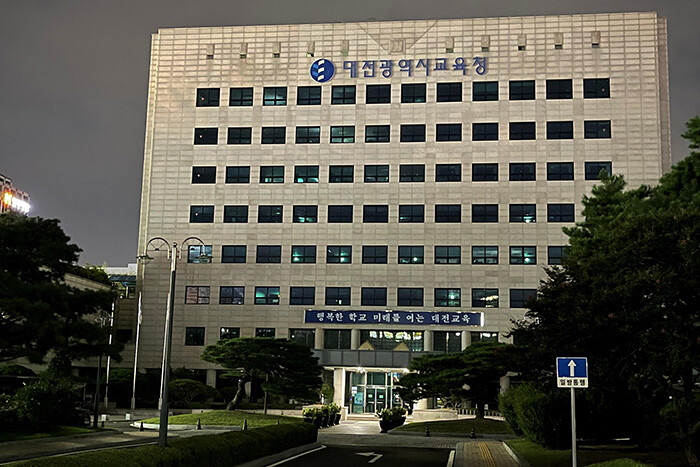 [세계로컬타임즈 민순혜 기자] 대전광역시교육청은 에너지시민연대가 주최하고, 산업통상자원부.환경부 등이 후원하는 ‘제19회 에너지의 날’을 맞아 ‘불을 끄고 별을 켜다’라는 주제로 저녁 9시부터 5분간 청사조명 소등 행사를 실시했다.
