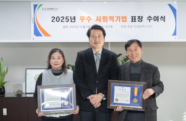 [세계로컬타임즈] 인천광역시 서구는 지난 5일 사회적가치 확산과 지역경제 활성화에 기여한 우수 사회적기업에 대해 구청장 표창을 수여하였다.