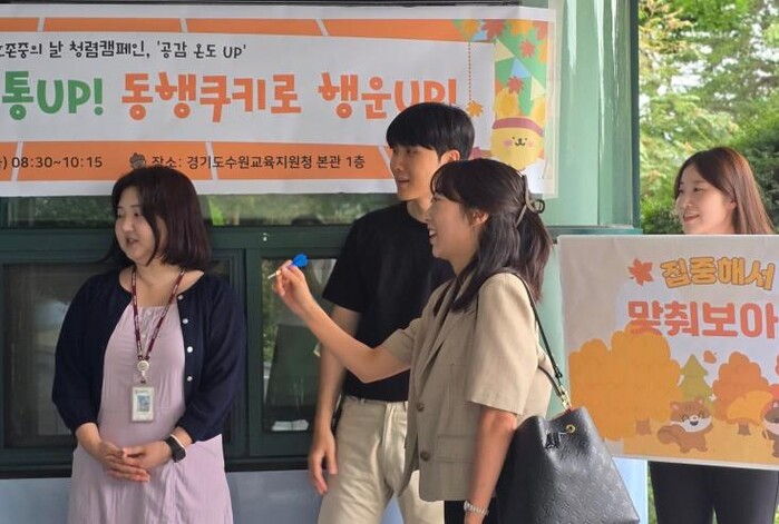 이번 행사는 청렴·반부패 문화 확산과 상호존중 조직 문화 조성을 위해 마련됐으며 수원교육지원청 본관 및 매산청사에서 출근 및 점심시간 대에 맞춰, 누구나 편하게 참여할 수 있도록 운영됐다.