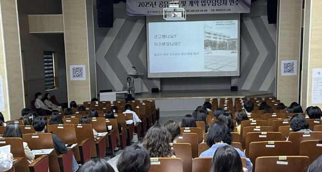 연수 과정은 ▲공유재산 관련 주요 법령 및 사무처리 절차, ▲계약 관련 실무지침 및 유의사항, ▲학교장터(S2B) 활용 방법, ▲사례 중심의 질의응답 등으로 구성됐으며, 현장 중심의 실질적인 내용이 강조됐다. 특히, 현장 실무경험이 많은 학교의 전문강사를 초빙하여 실무에 바로 적용 가능한 정보를 제공함으로써 참가자들의 큰 호응을 얻었다.