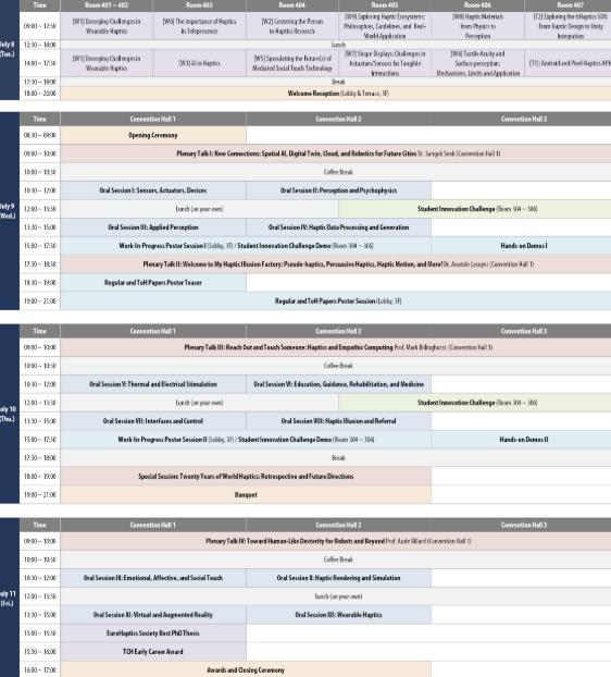 본 학술대회는 현장방문 등록이 가능하며, 등록자는 학술 연구 발표뿐 아니라 전시를 포함 약 100여건의 최신 햅틱스 기술 시연을 직접 체험하게 된다.