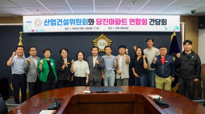 [세계로컬타임즈] 당진시의회 산업건설위원회는 15일 의회 대회의실에서 당진아파트연합회와 간담회를 열고, 공동주택 관리와 지원 정책의 개선 방향에 대해 논의했다.