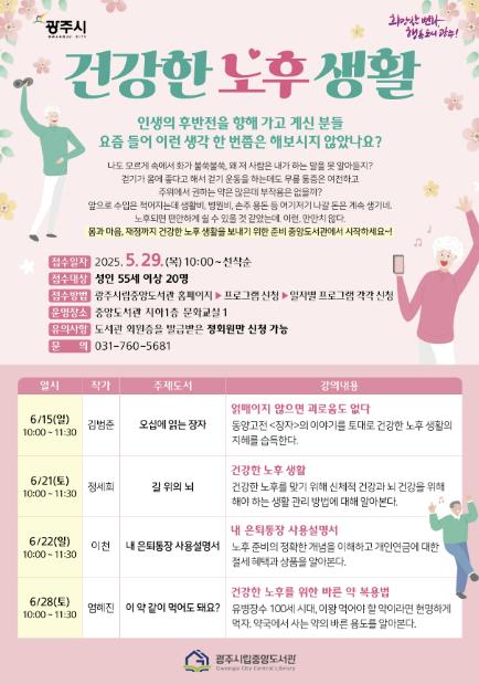 세계로컬타임즈 - 광주시립중앙도서관, ′건강한 노후 생활′ 주제 작가 특강 개최