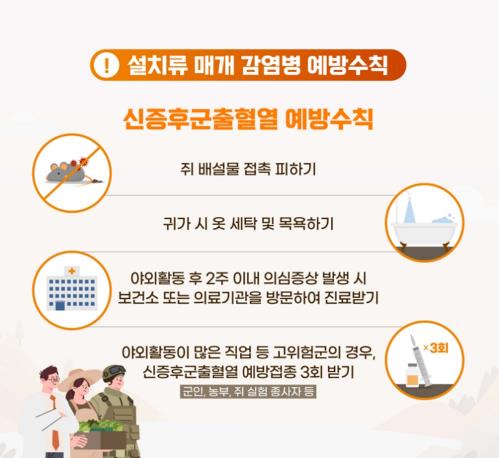 보건소 관계자는 “신증후군출혈열은 치료보다 예방이 중요한 감염병”이라며 “특히 야외활동이 잦은 시민은 반드시 예방접종을 받고, 생활 속 위생 수칙도 꾸준히 실천하길 바란다”고 말했다.