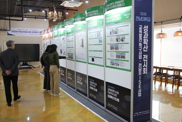 전남대 전남RISE사업단과 여수시교육특구사업단은 23일 여수캠퍼스 청경마루에서 2025년 한 해 동안의 성과를 집약한 전시회를 열었다.