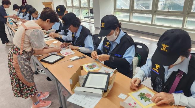 이번 교육은 노년층의 정서적 안정과 사회적 유대 강화를 위한 치유 프로그램으로, 식물과 자연을 활용한 ‘압화 액자 만들기’ 체험으로 진행됐다.