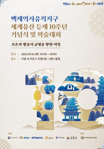 마지막으로 강동진 경성대학교 교수가 좌장을 맡고 조재모 경북대학교 교수, 송인헌 국가유산청 세계유산정책과장, 류호철 안양대학교 교수가 패널로 참여하는 종합 토론을 마련해 백제역사유적지구의 향후 발전 방향을 논의할 예정이다.