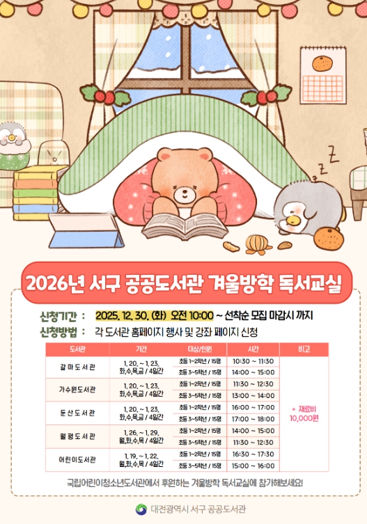 자세한 사항은 △갈마 △가수원 △둔산 △월평 △어린이도서관으로 문의하면 된다.