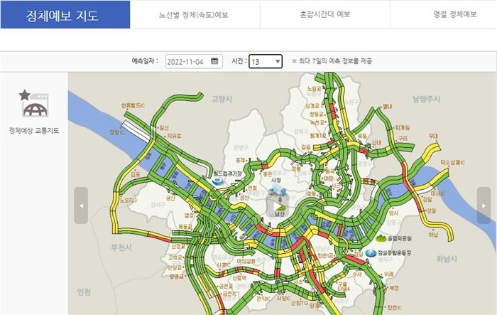 ‘정체예보 지도’, ‘노선별 정체예보’, ‘혼잡시간대 예보’ 등으로 구분하고, 명절과 대체휴일 등 이용차량이 몰릴 때를 고려한 ‘명절 정체예보’도 시기에 맞춰 준비한다.