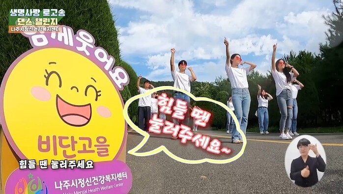 직원들은 노래 가사 속 생명의 소중함과 위로의 메시지에 맞춘 창작 안무를 통해 정신건강상담 대표번호 를 안내한다.