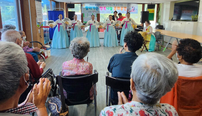 [세계로컬타임즈 이남규 기자] 함평 나르다예술단이 지난 14일 노인요양시설 소망뜰을 찾아 치매, 중풍 등을 앓고 있는 어르신 30여 명을 모시고 ‘행복 나눔 문화공연’을 펼쳤다.