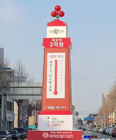 [세계로컬타임즈 글·사진 김봉관 기자] ‘나눔과 봉사, 기부천국’ 고창군의 사랑의 온도탑이 올해도 100도를 돌파하며 임인년 시작을 훈훈하게 하고 있다.