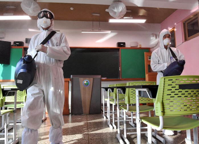 | ▲ 2023학년도 대학수학능력시험을 이틀 앞둔 15일 수능 시험장 지정에 따른 특별 방역이 진행되고 있다. (사진=뉴시스) |
