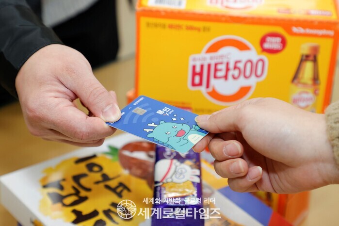 | ▲ 한 시민이 용인와이페이 조아용 카드를 이용해 물건을 구매하고 있다. (사진=용인시) |