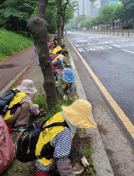 어르신들은 가로수 주변과 인도 가장자리에 자란 잡초를 제거하며, 도로 미관을 해치던 잡목과 쓰레기도 함께 수거했다.
