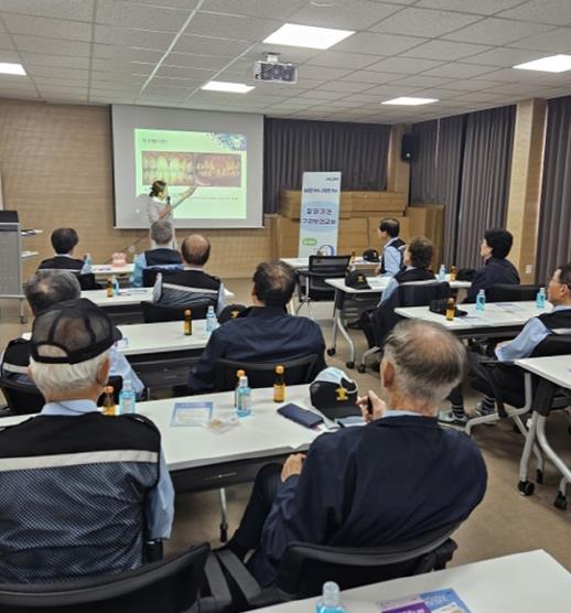 강사는 실버경찰대원들이 건강하게 지역사회 봉사활동을 이행할 수 있도록 ▲노인 구강질환의 종류와 관리 ▲일상 속 올바른 칫솔 방법 및 틀니 관리 ▲구강 기능을 높이는 구강체조 등에 대해 강의했다.