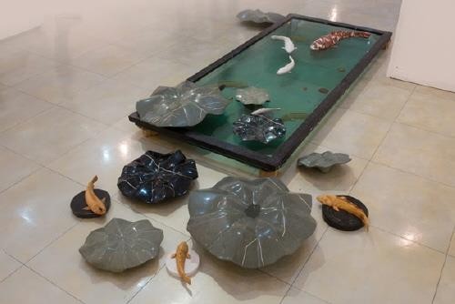 물고기들이 조심스레 연잎과 공존하는 장면은 차분하고 담담한 전통 산수화의 모습을 연상시킨다.