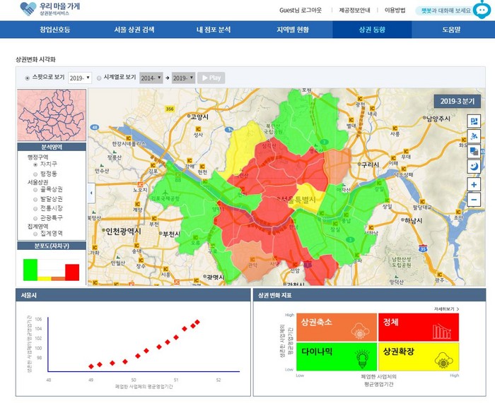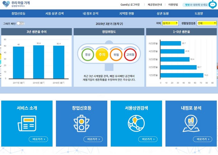 시장 빅데이터 분석을 통한 골목상권 유효수요 창출과 상권 활성화를 도모하기 위한 인터넷 사이트 ‘서울시 우리마을가게 상권분석서비스’가 7일 개편·오픈하는 것.