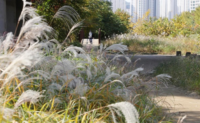 | ▲ 학의천 산책로에 억새풀이 가을의 정취를 느끼게 해주고 있다. (사진=안양시 제공) |