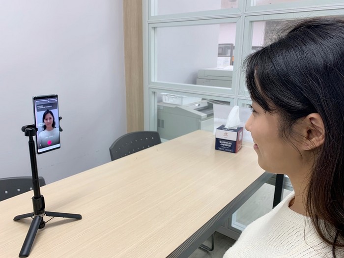 | ▲ 한 학생이 비대면 채용설명회를 진행중이다. (사진=연수구 제공) |