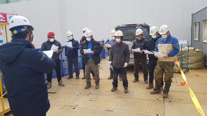 | ▲ 인천 남동구 구월지웨시티푸르지오 현장에서 보건안전교육이 이뤄지고 있다. (사진=남동구청 제공) |
