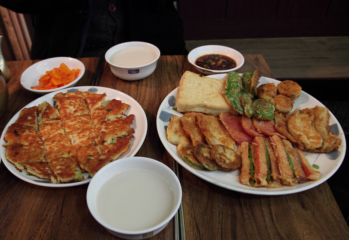 수도권의 대표적인 전통시장인 광명시장. 평일에도 낮부터 밤까지 많은 사람으로 붐비는 활기찬 시장이다. 광명시장의 다양한 먹거리 중에서도 단연 최고의 인기 음식은 빈대떡. 녹두를 갈아서 다진 채소를 넣고 두툼하게 부친 빈대떡이 3,000원. 맛과 가격 모두 훌륭하다. 이 외에도 해물파전과 김치전 등 따뜻하게 부쳐내는 다양한 전이 모두 푸짐하다. 30년 가까이 같은 자리를 지키고 있는 만큼 광명시장의 빈대떡집은 오랜 단골손님이 유난히 많다.