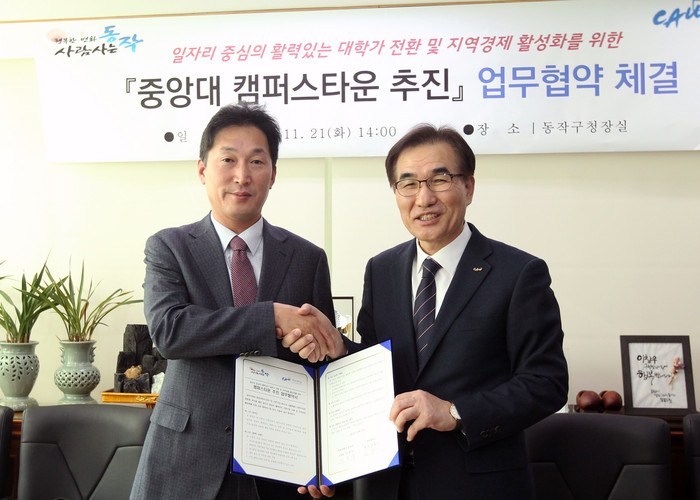 지난 21일 서울 동작구(구청장 이창우)가 중앙대학교(총장 김창수)와 캠퍼스타운 종합형 공모사업을 위한 업무협약을 체결하고 본격적인 사업추진에 나섰다고 동작구가 22일 밝혔다.