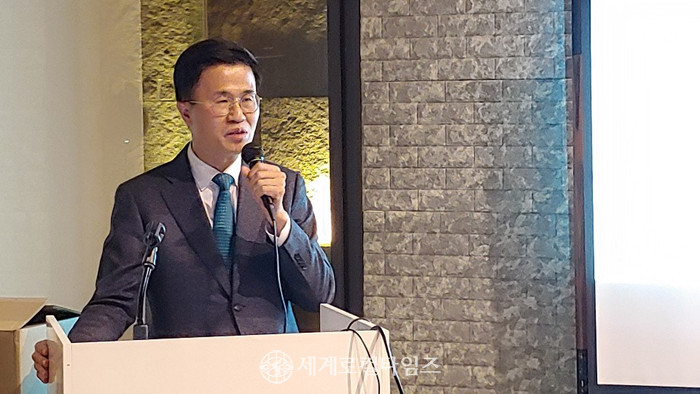 | ▲5일 서울 서초구 쉐라톤서울팔래스호텔에서 열린 세계일보 조사위원 중앙위원회 송년행사에서 정희택 세계일보 사장이 축사를 하고 있다. (사진=최경서 기자) |