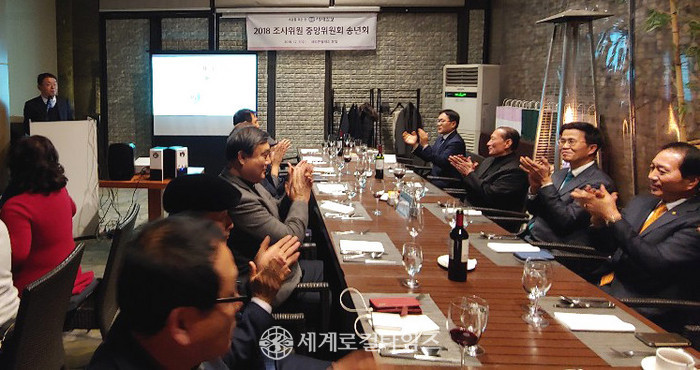 이날 박귀종 중앙위원회 의장은 송년사에서 “오늘 송년회는 중앙위원 모임 중 참석률이 가장 높아 참석한 위원들에게 감사하며, 얼마 남지 않은 2018년이지만 올 한 해 큰 탈 없이 무사히 지내온 것에 감사하다”며 “오는 2019년 새해는 세계일보 조사위원 중앙위원회가 더욱 번창하고 많은 행사들을 통해 함께 하며 봉사할 수 있는 한 해가 되기를 바란다”고 말했다.