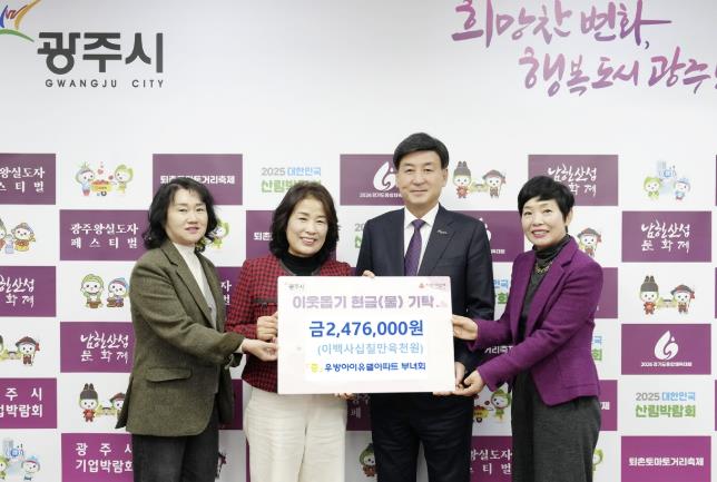 김점홍 부녀회장은 “광주역우방아이유쉘아파트 부녀회는 지역사회와 함께 성장하는 따뜻한 공동체를 만들기 위해 꾸준히 봉사와 나눔 활동을 이어오고 있다”며 “이번 기탁도 주민들에게 작은 힘이나마 보탬이 되고 상생의 가치를 실천하고자 회원들의 마음을 모아 추진하게 됐다”고 기탁 취지를 전했다.