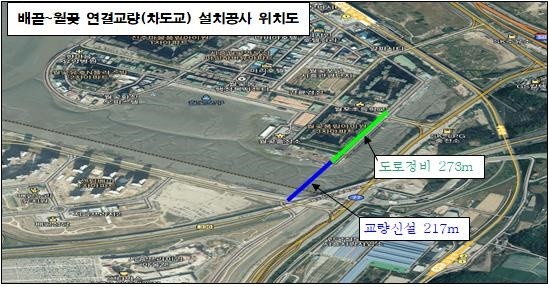 | ▲ 배곧~월곶 연결교량(차도교) 설치공사 위치도. (항공사진=시흥시 제공) |