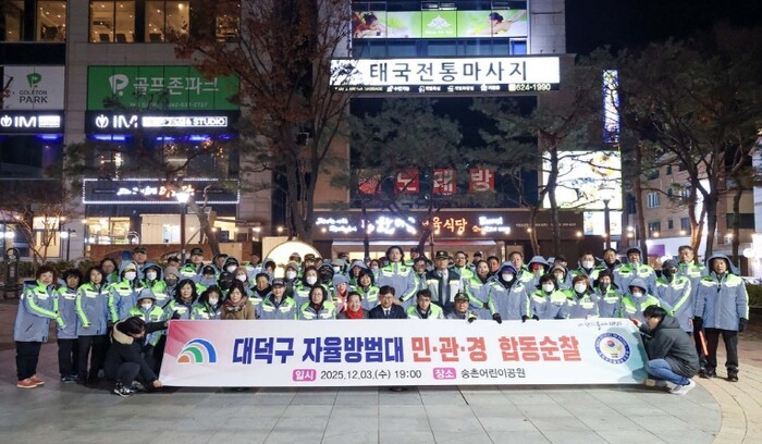 최충규 대덕구청장은 “지역의 안전을 위해 헌신해 주시는 자율방범대원들의 노고에 깊이 감사드린다”며 “앞으로도 경찰, 방범대와 긴밀히 협력해 밤에도 안심할 수 있는 안전한 도시를 만드는 데 총력을 다하겠다”고 말했다.