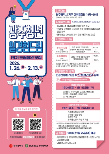 권윤숙 청년정책과장은 “일경험드림 사업은 청년들이 지역에서 진로를 탐색하고 직무 경험을 쌓을 수 있는 대표적인 청년 정책”이라며 “앞으로도 청년들이 광주에서 좋은 일경험을 통해 성장하고 정착할 수 있도록 적극 지원하겠다”고 말했다.