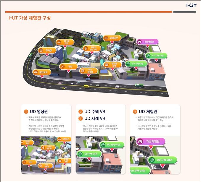 가상체험관 ‘i-UT(이웃)’은 ▲UD영상관 ▲UD체험관 ▲UD주택 VR관 ▲UD사례 VR관으로 구성된다.