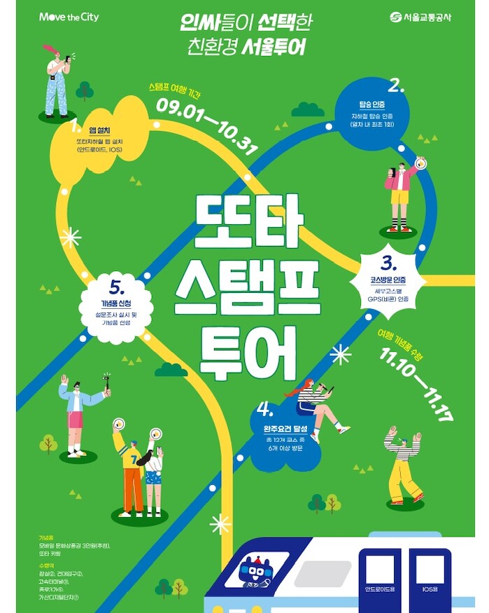 스탬프 투어는 공사 앱인 또타지하철 앱을 통해 진행하며, 완주자에게 기념품도 증정한다.