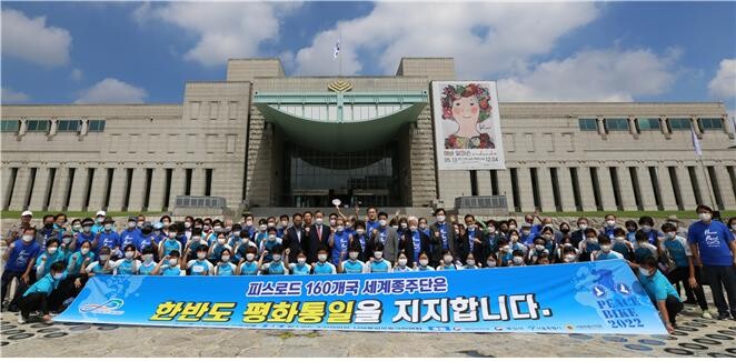 한반도 평화통일과 세계평화를 염원하며 세계 8개국 청년학생들이 함께 달리는 ‘피스로드 2022 서울시 통일대장정’이 서울 용산 전쟁기념관에서 개최됐다.