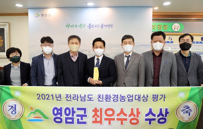 [세계로컬타임즈 강석운 기자] 영암군은 지난 1일 전라남도청 김대중강당에서 전라남도가 주관하는 ‘2021년 전라남도 친환경농업대상 평가’ 기초자치단체 분야 최우수상과 함께 재배생산 분야에서 황성주 농업인도 수상해 영암군 친환경농업의 위상을 더욱 드높였다고 6일 밝혔다.