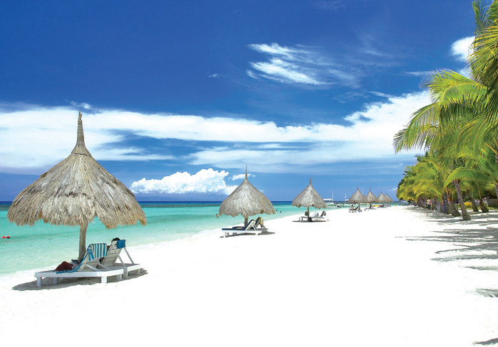 | ▲ 하얀 백사장과 산호빛 바닷물로 아름다운 보홀 섬 해변가를 찾은 관광객들이 그늘에서 휴식을 취하고 있는 모습. |
