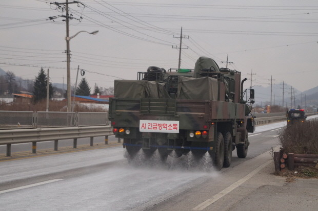 제8기계화보병사단은 최초 AI 발생 이후 지난해 12월부터 설 연휴기간에도 쉬지 않고 꾸준히 방역초소를 운영하며 도로 방역지원 및 축산농가 차량에 대한 고압세척 소독을 실시했다.