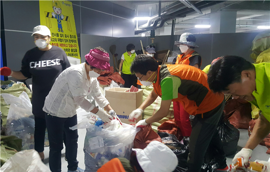 김 의원과 봉사단원은 3개조로 나눠 A조는 건물 외부, B조는 실내 1~3층 공간, C조는 쓰레기 분리작업을 진행했다.