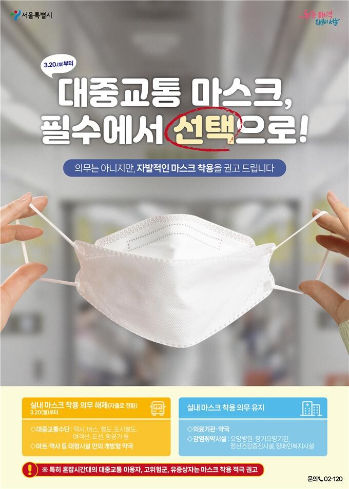 이에 따라 대중교통 수단의 마스크 착용 의무는 해제되지만, 출퇴근 등 혼잡시간대의 경우 마스크 착용을 권고한다.
