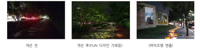 시는 또 기념일, 행사 등 이벤트 기간 중 거리 조명을 특정 색상으로 연출하거나 보행로 벽·바닥에 메시지 등을 투영하는 펀 디자인 가로등을 설치, 이색적이면서도 안전한 거리 경관을 연출할 계획이다.