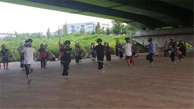 | ▲ 웃다리농악 대전시 선수단이 유성구 테크노밸리 용신교 아래에서 훈련을 실시하고 있다.<사진제공=대전시청> |