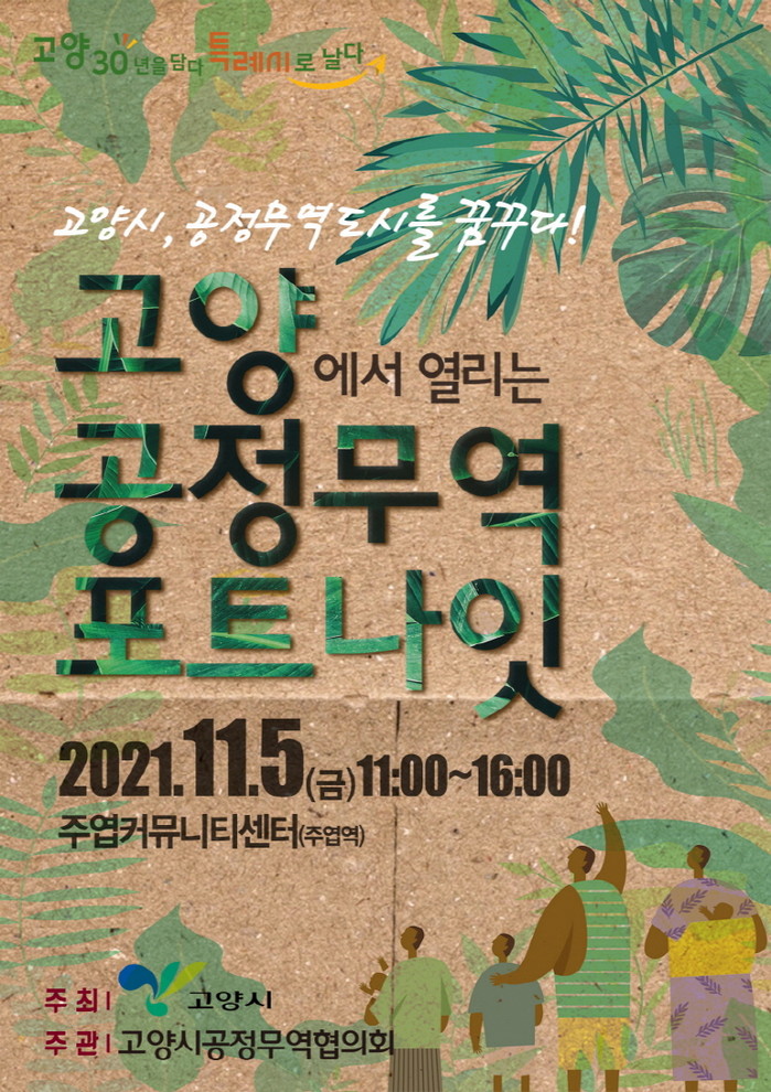 [세계로컬타임즈 손성창 기자]고양시(시장 이재준)가 오는 11월 5일 ‘2021년 고양시 공정무역 포트나잇’ 축제를 주엽커뮤니티 센터(주엽역 광장)에서 개최한다.