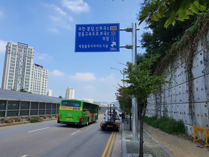 복합물류지하차도 이용 활성화, 교통량 분산을 통한 시내 교통소음 저감, 기존 군포고가교 등의 교통난 해소를 위해 도로표지판을 세웠다고 시는 설명했다.